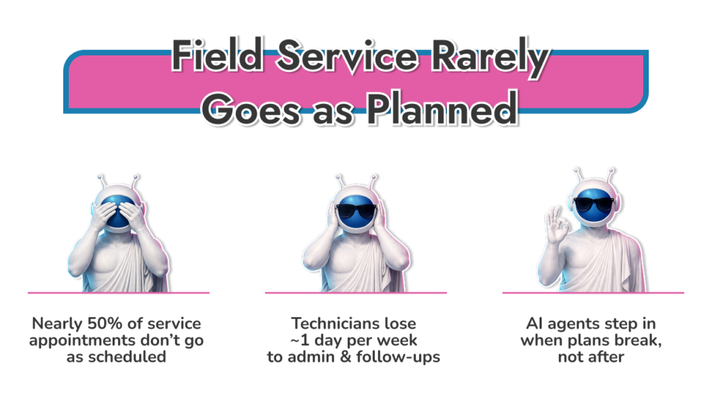 Field service doesn’t fail because teams lack effort. It fails because plans change, details get missed, and too much time is spent holding the operation together by hand.
