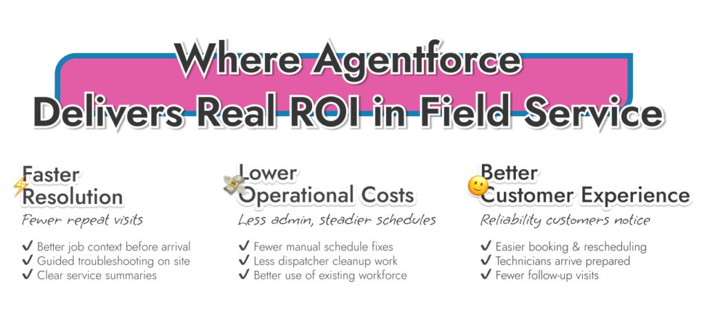 When teams ask what justifies Agentforce for field service pricing, this is usually the answer. Not features, but steadier operations and fewer failures that customers remember.