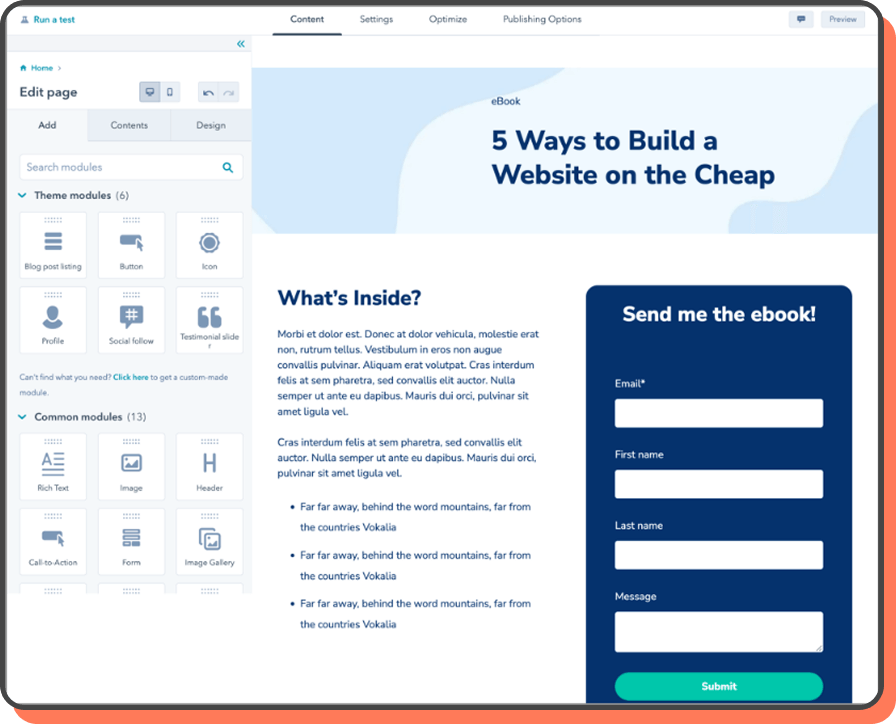 Mobile-ready and testable: HubSpot’s editor makes headline, image, and CTA tests easy.