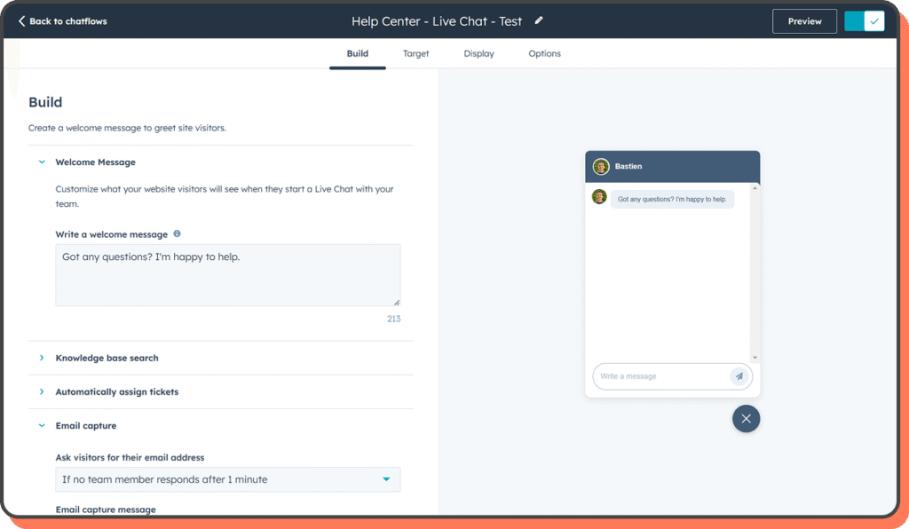 Real-time engagement works because it meets the lead at their peak interest. HubSpot’s chat tools keep that conversation tied to the contact record, giving sales context without another round of “so, what brings you here today?”