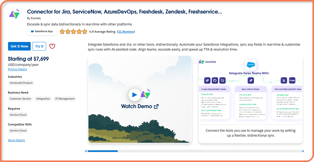 Exalate the name on this Salesforce apps list built for situations where Salesforce is on the table, and so is Jira, or ServiceNow, or something similar, and everything needs to match without copying notes over manually. It syncs both directions and avoids the usual double-entry mistakes.