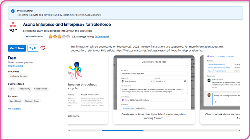 Campaigns fall apart when tasks hide in notes or someone forgets who was supposed to follow up. Asana turns those loose ends into real tasks tied to the Salesforce record that created them. It keeps small jobs from disappearing.