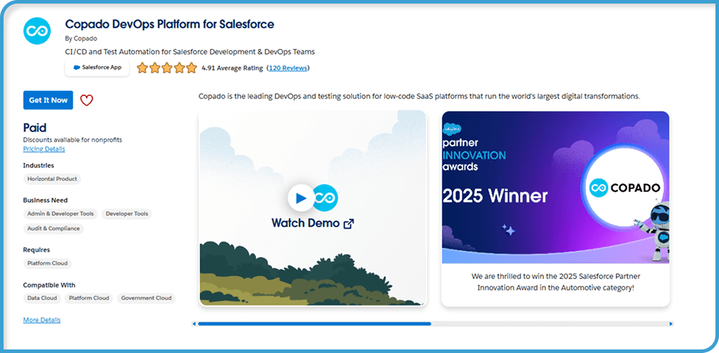 Copado gives release work a place to live. Pipelines, approvals, and tests stay together so everyone knows what’s moving and when. It cuts down on the “did we already deploy this?” moments that pop up in busy orgs.