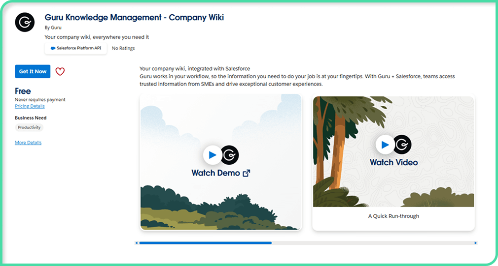 Guru brings the important information like pricing rules, product details, and ownership questions straight into Salesforce. Instead of digging through old documents or Slack channels, reps see what they need right where they’re working.