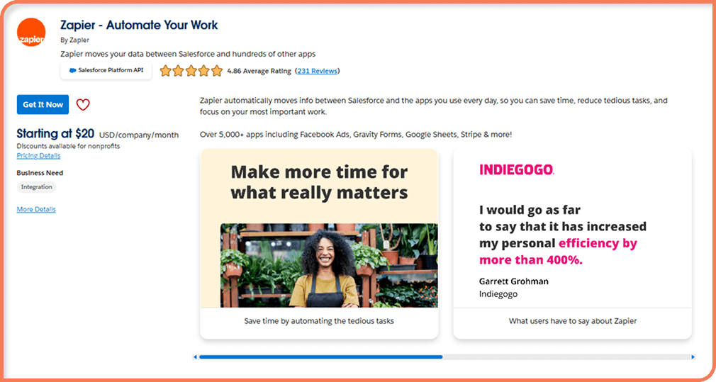 The store includes simple add-ons, full enterprise platforms, automation packs, industry tools, and plenty of tools that connect Salesforce to everything from payment systems to mapping engines.
