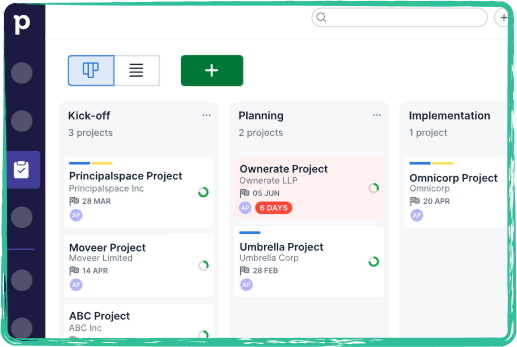 Agencies and creative firms keep track of prospects, proposals, and onboarding steps.
