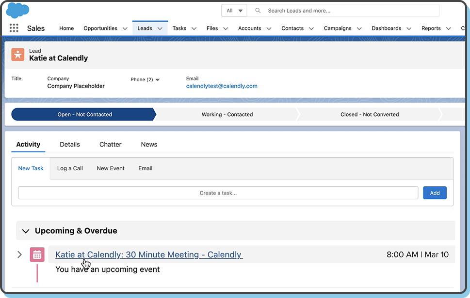 Without a Salesforce Calendly connection, your team might get an email notification. Maybe someone copies the details into Salesforce. But maybe they done. Just like that, you’ve got a scheduling black hole where leads disappear.