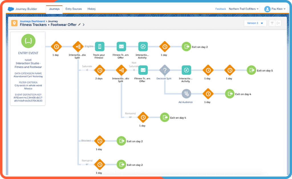 This is where the real divergence happens in the Salesforce marketing cloud vs HubSpot marketing hub debate. Salesforce Marketing Cloud comes with Journey Builder, a tool that allows you to create incredibly detailed automation workflows.