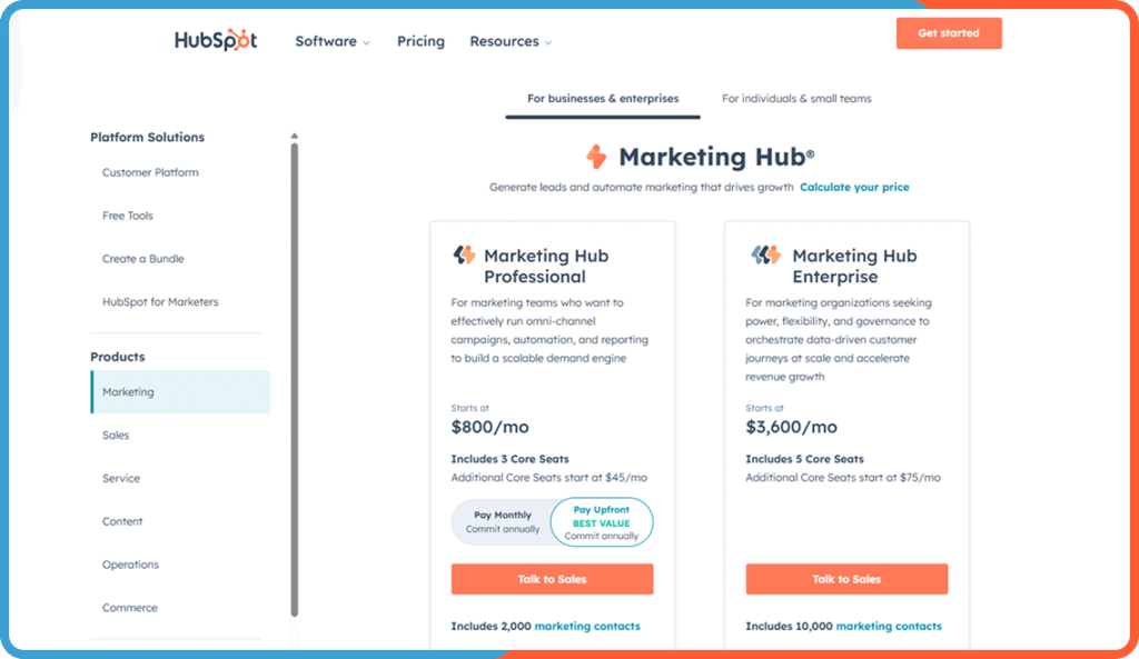 Here’s how a HubSpot Marketing Hub vs Salesforce Marketing Cloudcomparison breaks down: