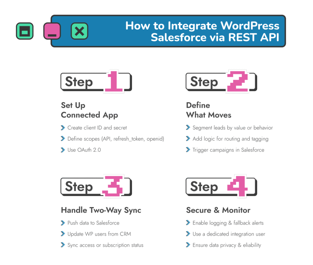 A REST API-driven WordPress and Salesforce integration isn’t overkill, not if you care about data security and having something that actually lasts. It’s not for everyone, sure. But for teams tired of hitting plugin limits, it’s usually the best move.