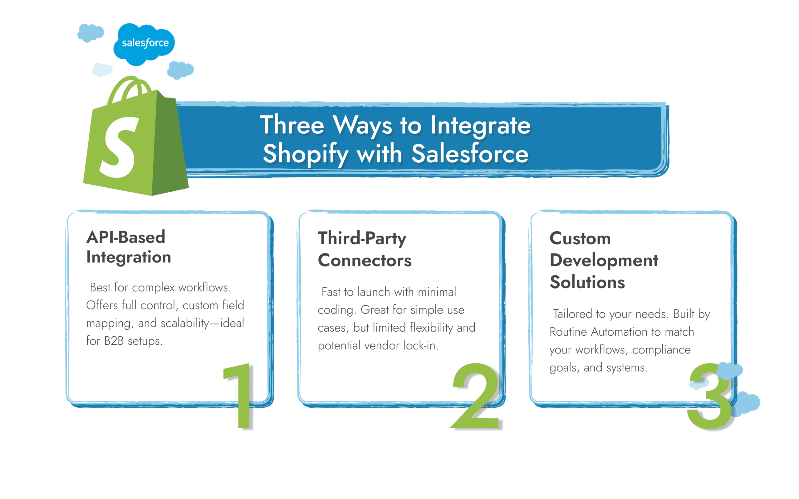 This is where Routine Automation comes in. We help businesses integrate Shopify with Salesforce in a way that fits their process, not someone else’s template.