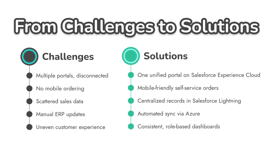 But with that breadth came complexity. Each division had its own communities, each with different portals and processes. Customers often had to jump between platforms, and the company’s own teams struggled to keep track of sales and service activity in one place.
