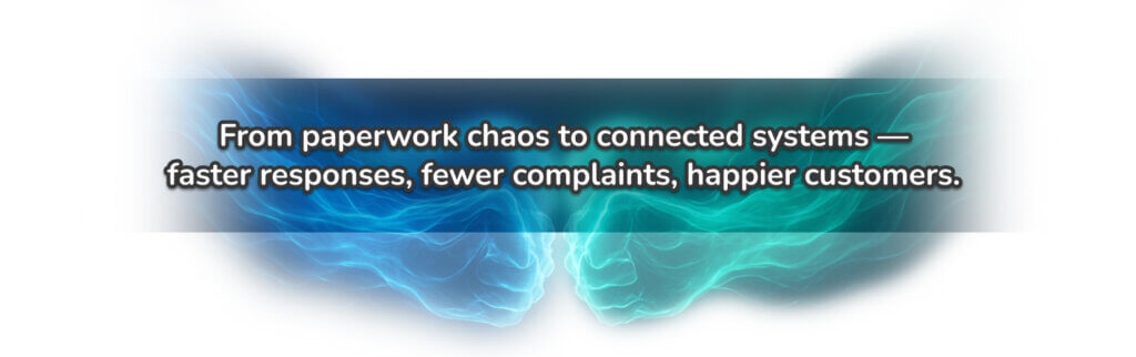 On its own, each task seemed manageable. Put together, they slowed everything down. A technician who should have been at the next site was still tied up filling forms. A manager who needed to move resources around couldn’t do it with a click; it took time and energy. Customers sometimes felt that lag.